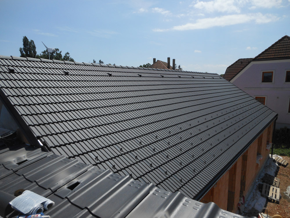 Dacheindeckung mit Beton- und Tondachziegel, Faserzementschindel, Faser-Zementplatten, Faser-Zement-Wellplatten